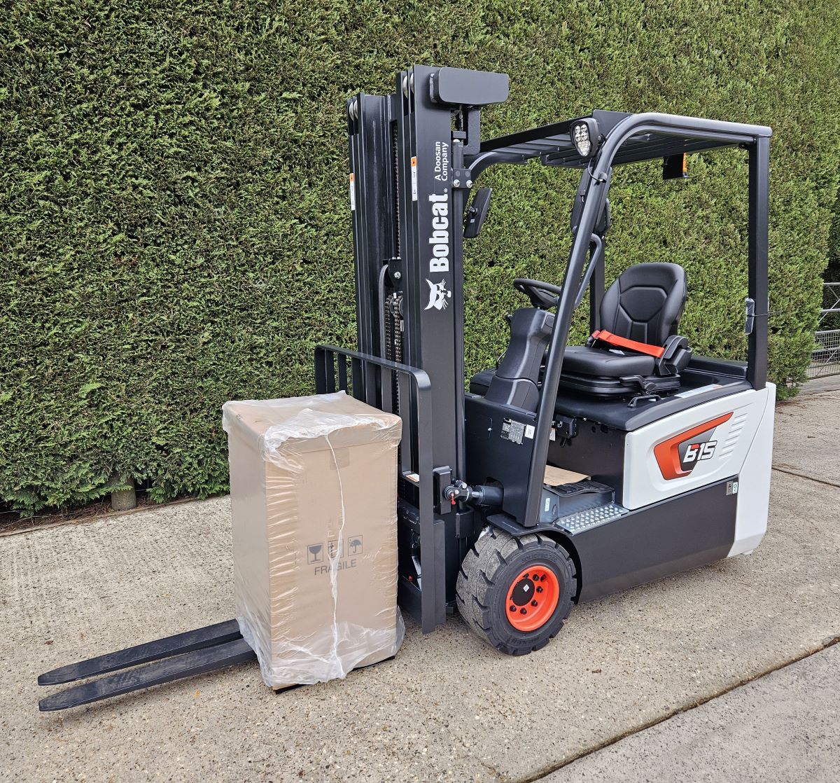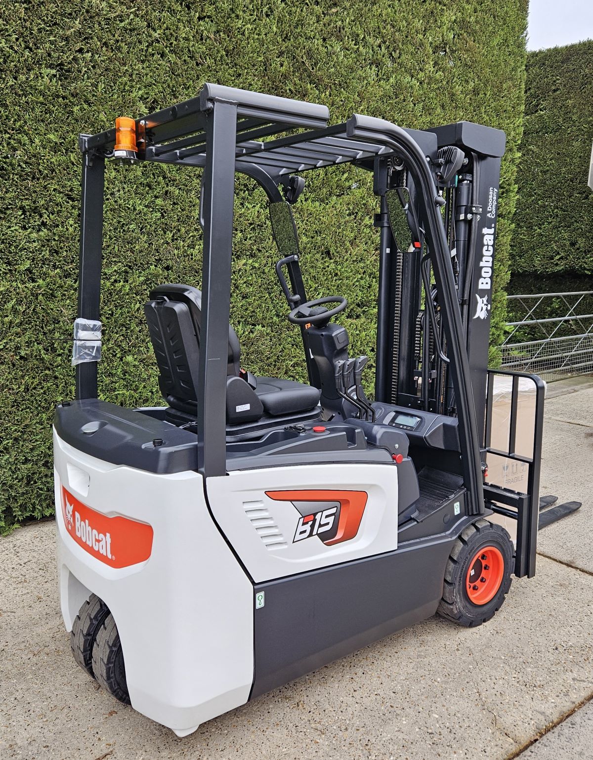 Brand New 5533 Bobcat B15T-7 electric counterbalance 3 wheel forklift 4750mm lift height mast, closed height 2140mm 1500kg.